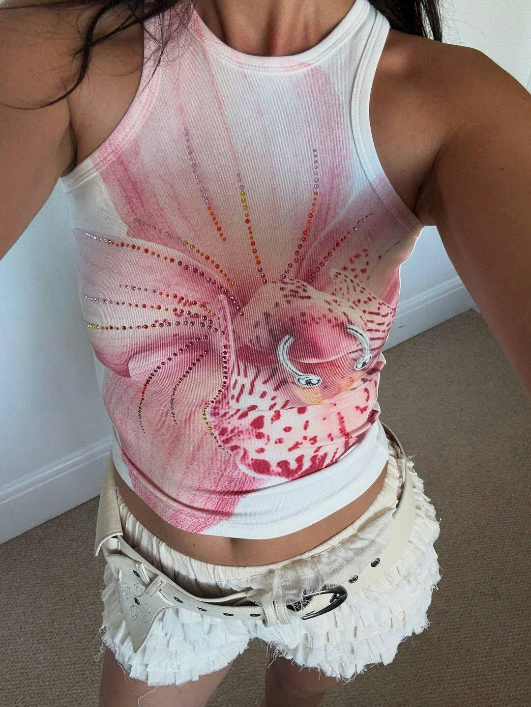 Natur in Bewegung – dieses Racerback-Trio vereint skulpturale Blütenmuster und sanfte Muschelspiralen mit funkelnden Strasssteinen. Entworfen, um die Figur zu betonen. Geschaffen, um Ausdruck zu verleihen.