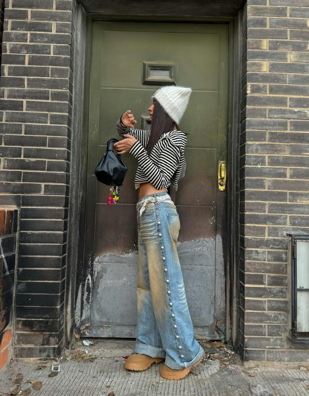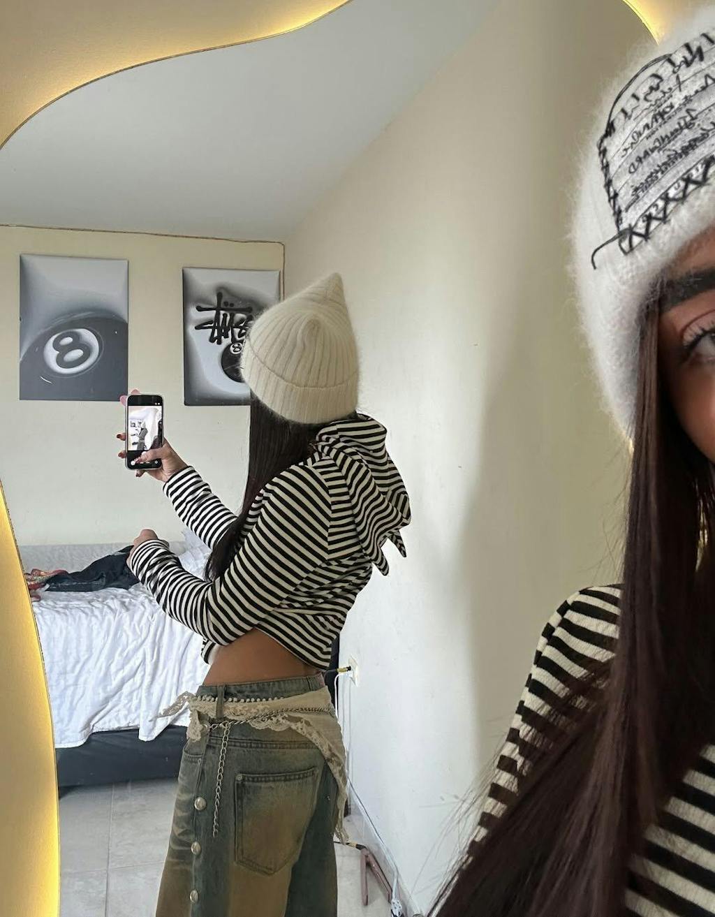 Diese Mütze aus Angora-Mischgewebe ist perfekt für einen lässigen Streetstyle. Ihre gerippte Strickstruktur formt beim Tragen auf natürliche Weise verspielte Ohren. Handgenähte Details runden das Design ab. Weich, flauschig und dehnbar hält sie warm und verleiht jedem Outfit eine verspielte Note.