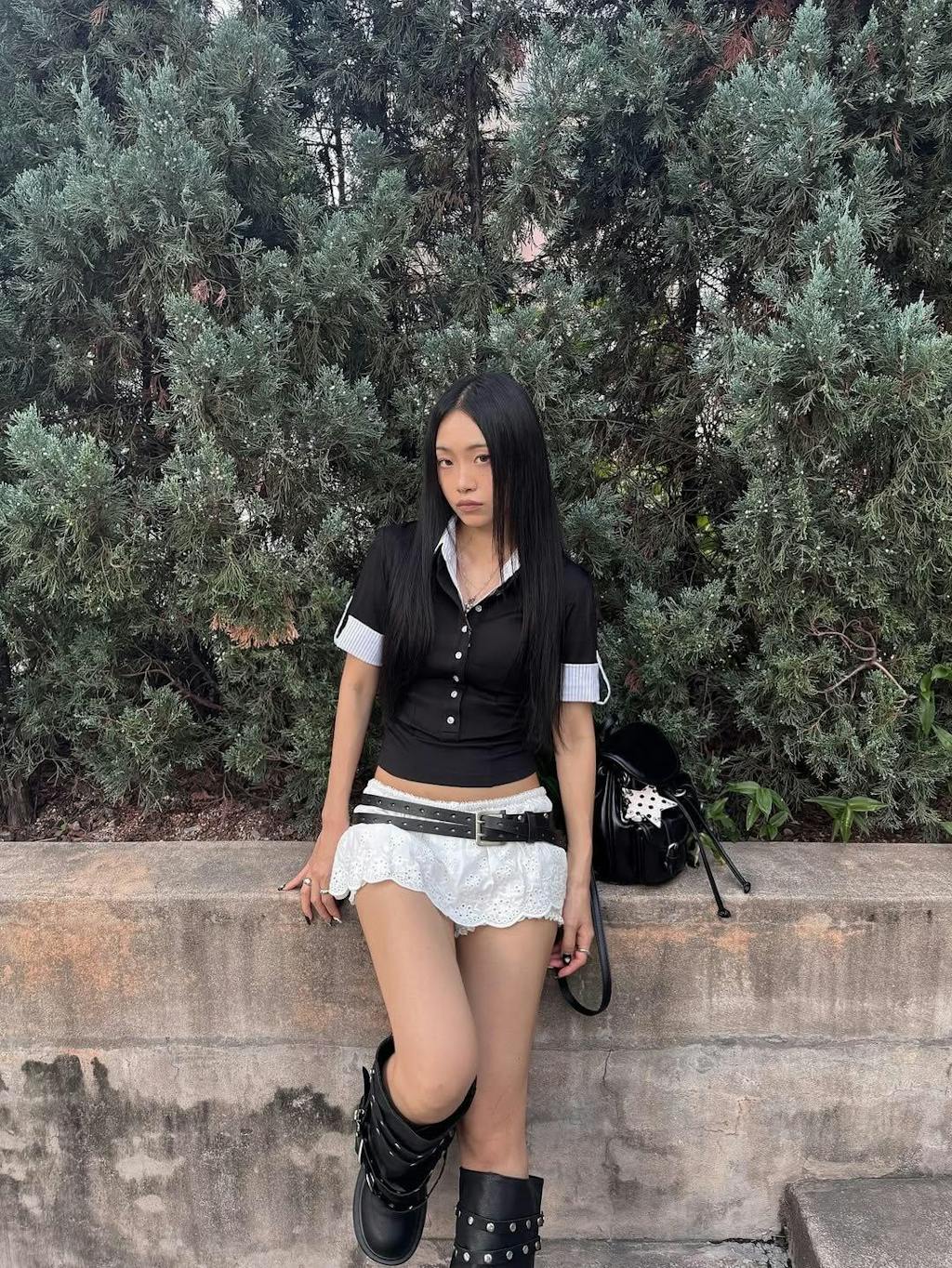 Die Knopfleiste betont Ihre Figur, während der unerwartet tiefe V-Ausschnitt und der Lagenlook den „Büro-Look“ mit einer rebellischen Note neu definieren.
