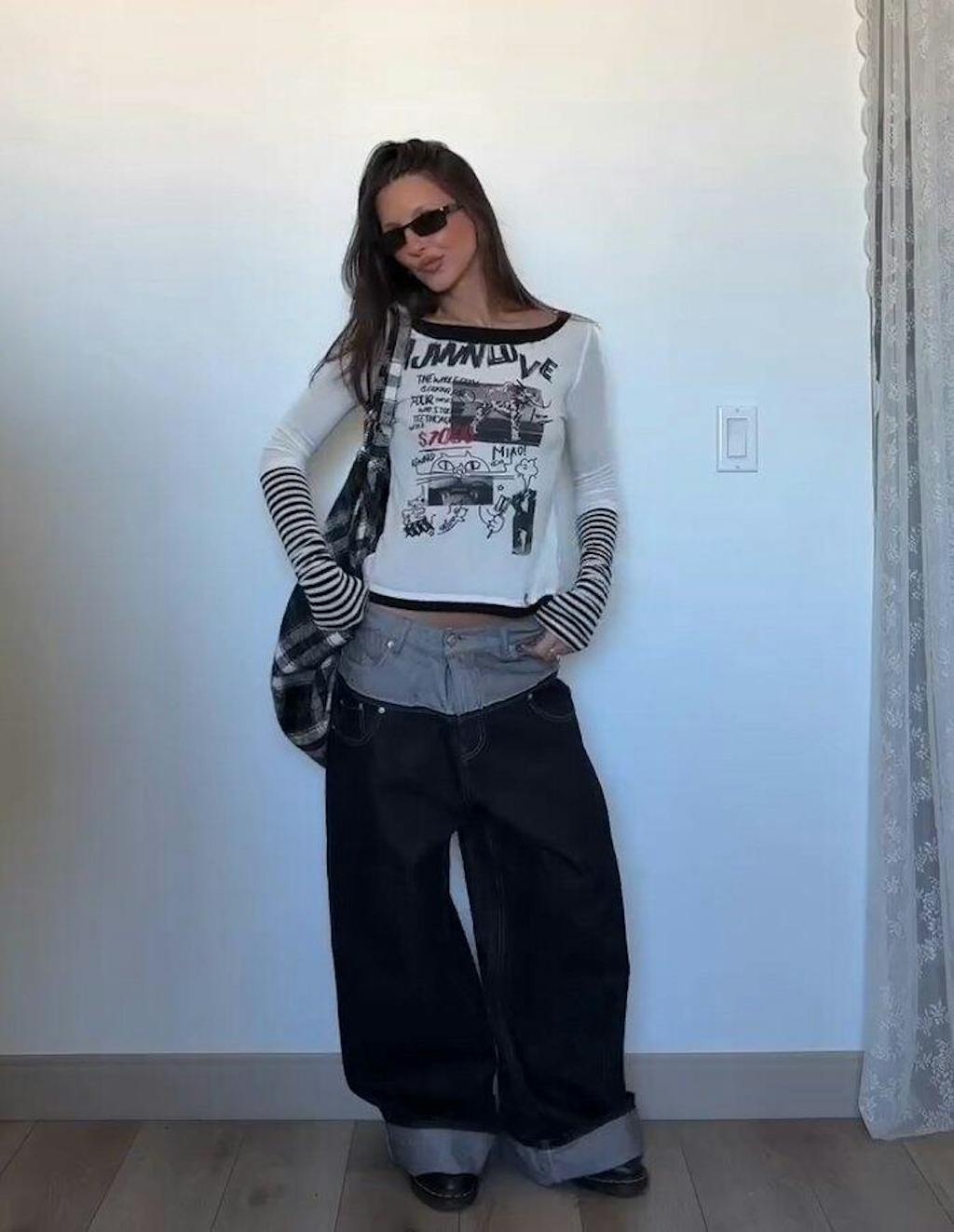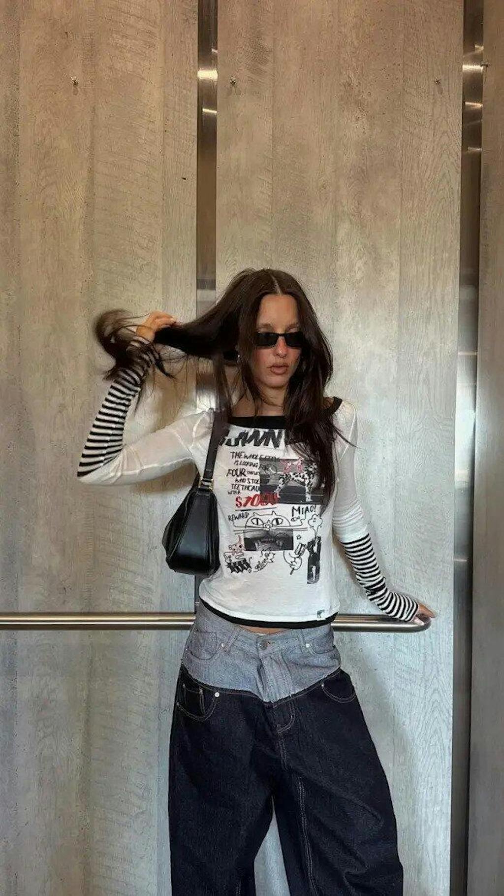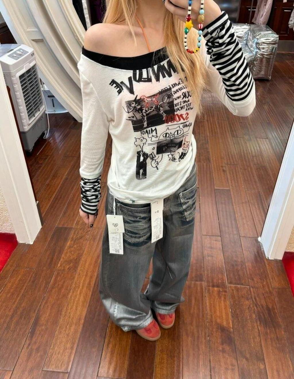 Damen-Top mit Graffiti-Print und Lagenlook