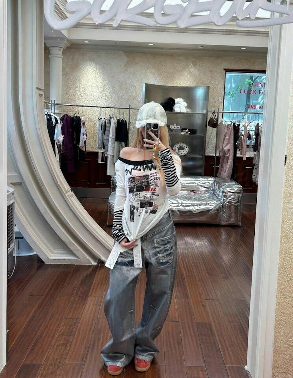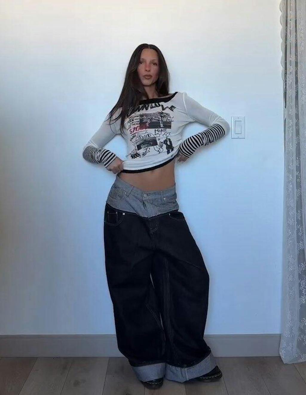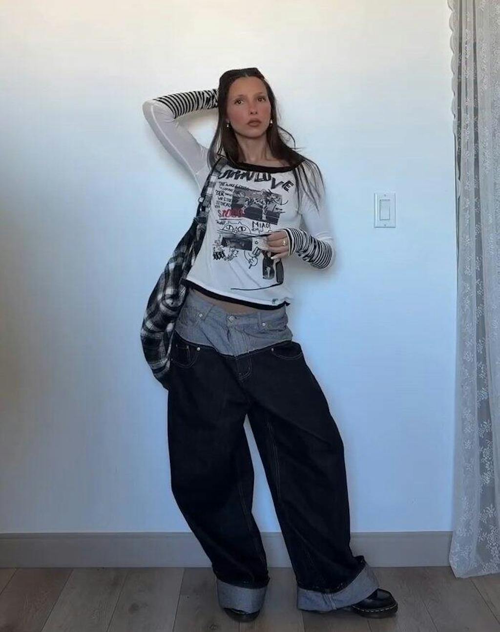 Damen-Top mit Graffiti-Print und Lagenlook