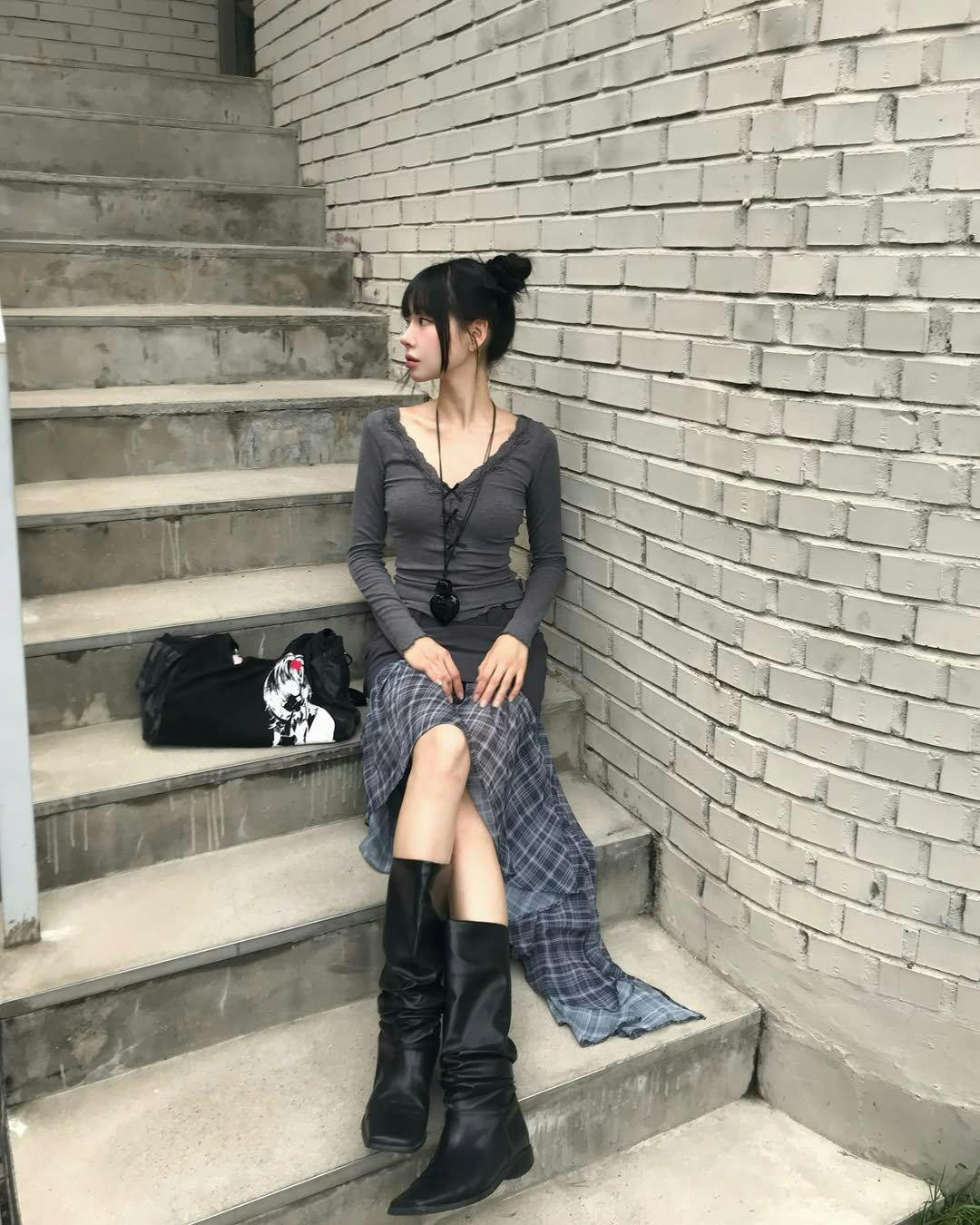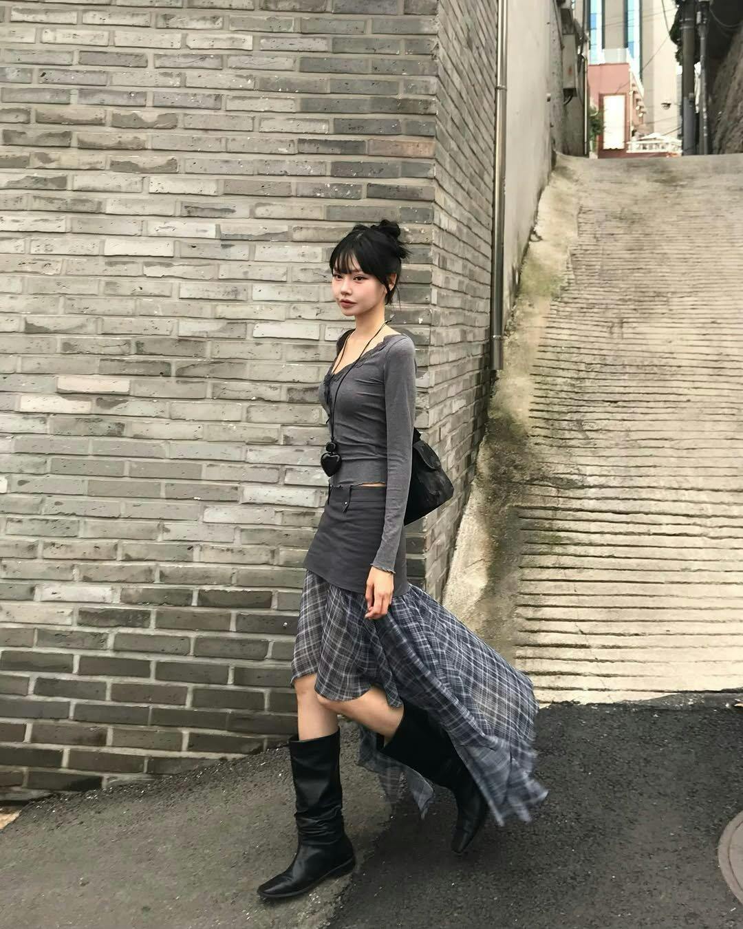 A soft chiffon midi skirt with an asymmetric drape, plaid mesh layers, and a breezy flow. Perfect as a chiffon midi skirt, plaid asymmetric skirt, lightweight summer skirt for a romantic and effortless edit.