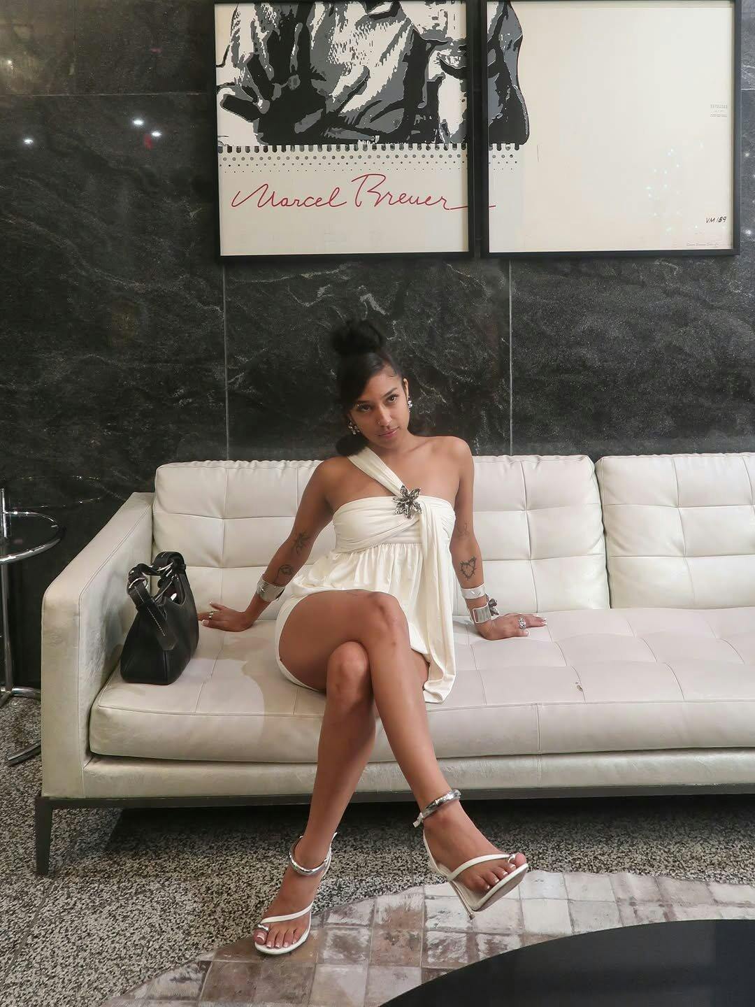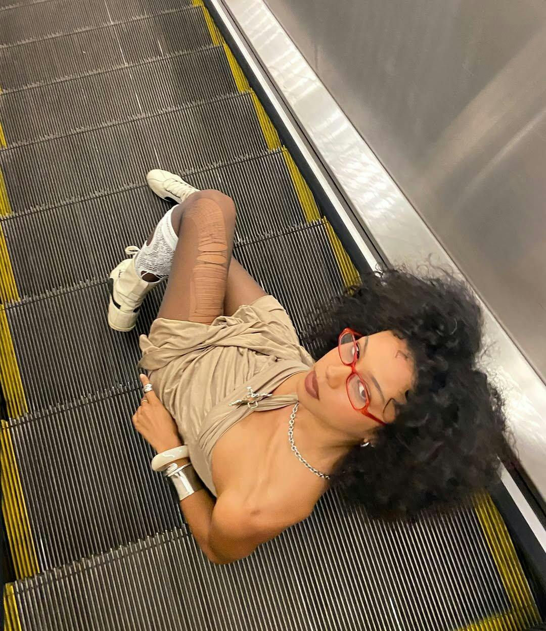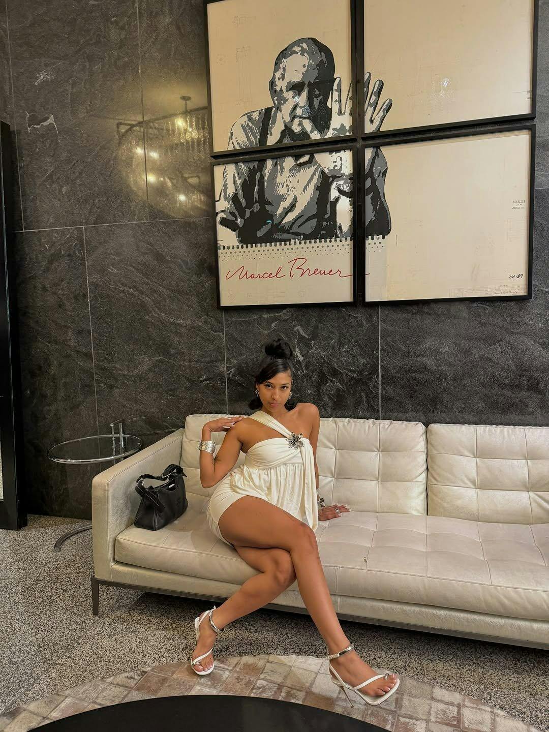Shimmery acetate and sculptural folds—just add silver boots and a bold earring.