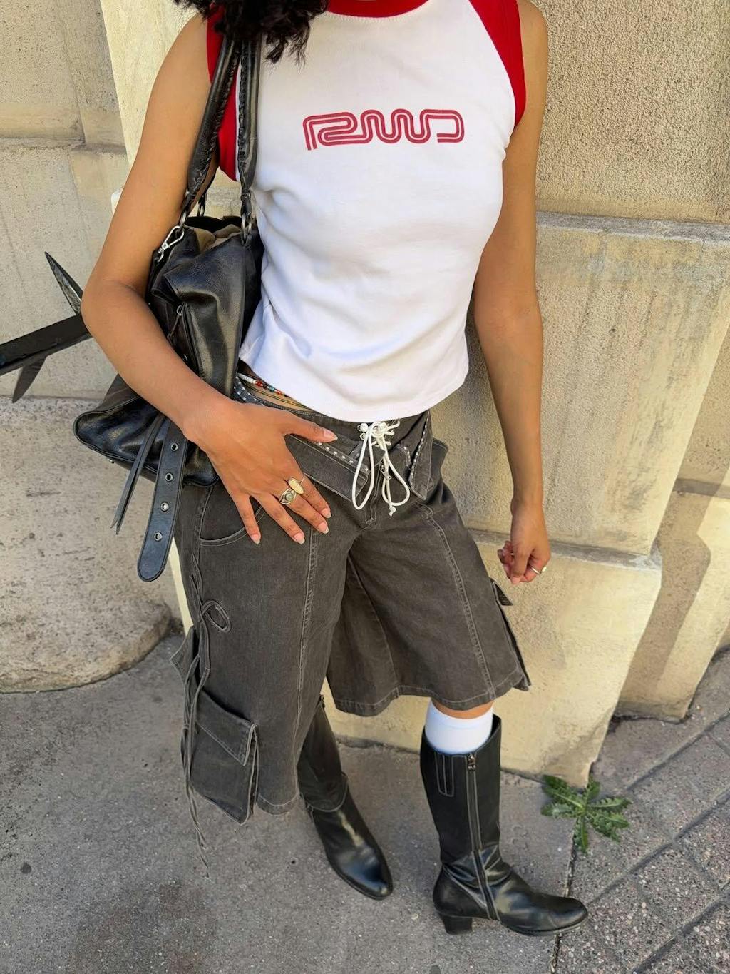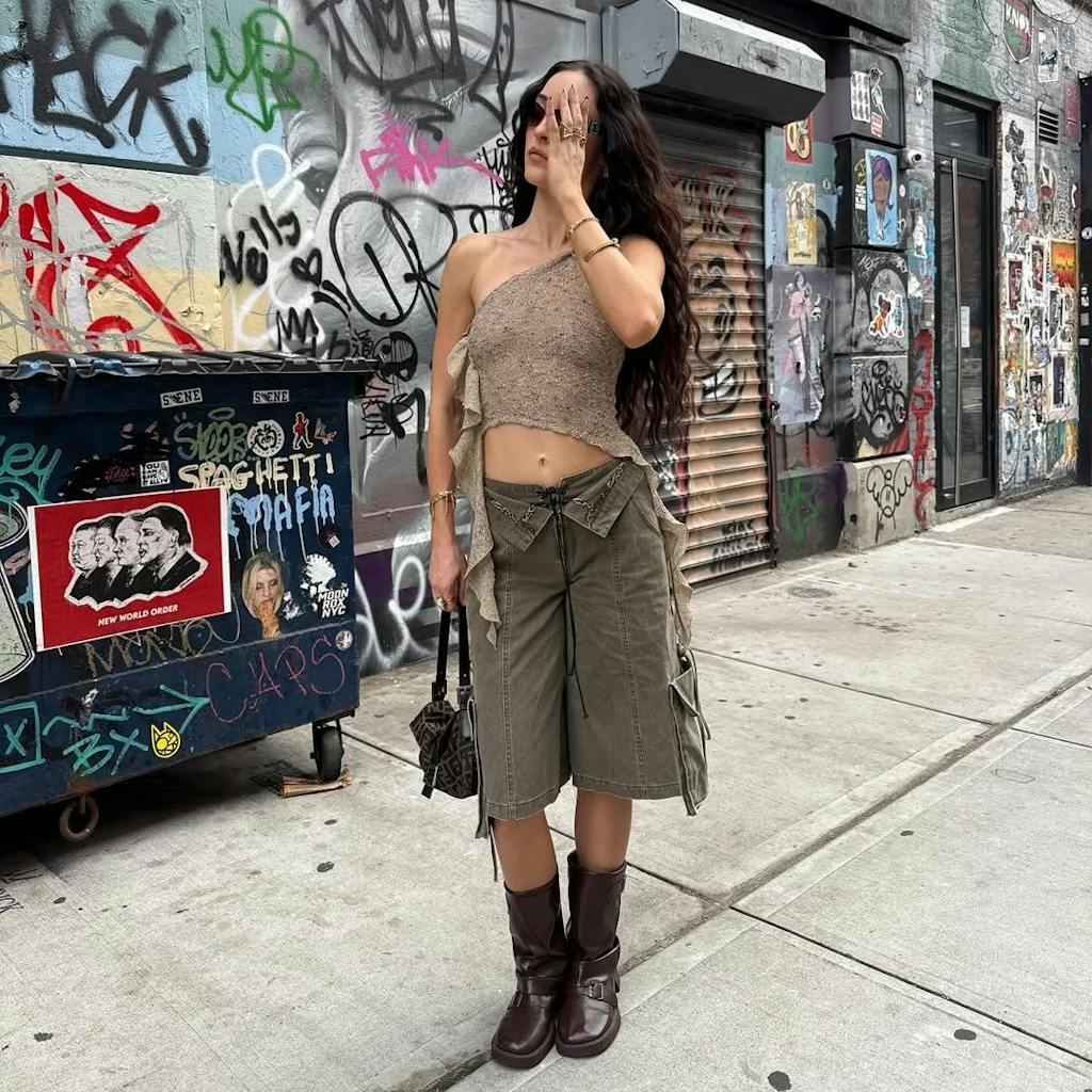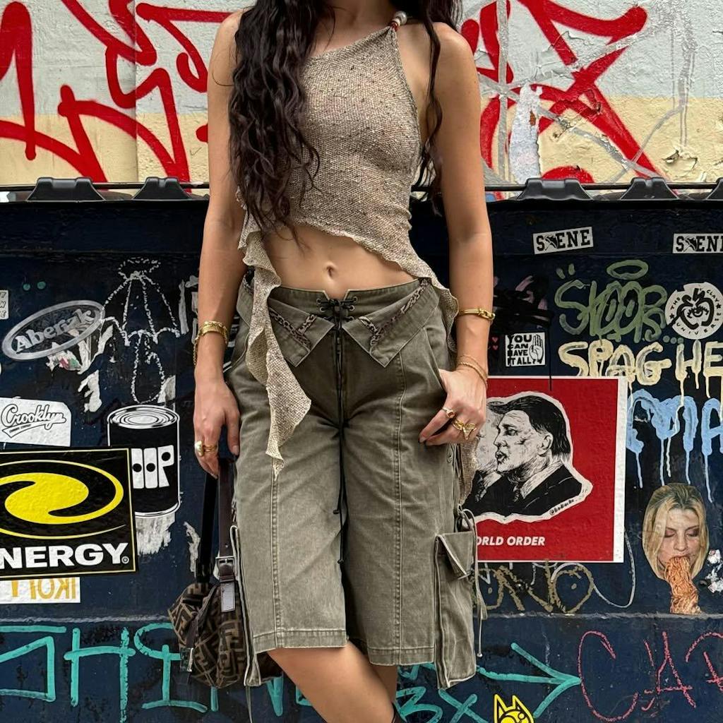 Washed canvas meets dual-waist detailing and utility ties—tailored chaos at its finest.